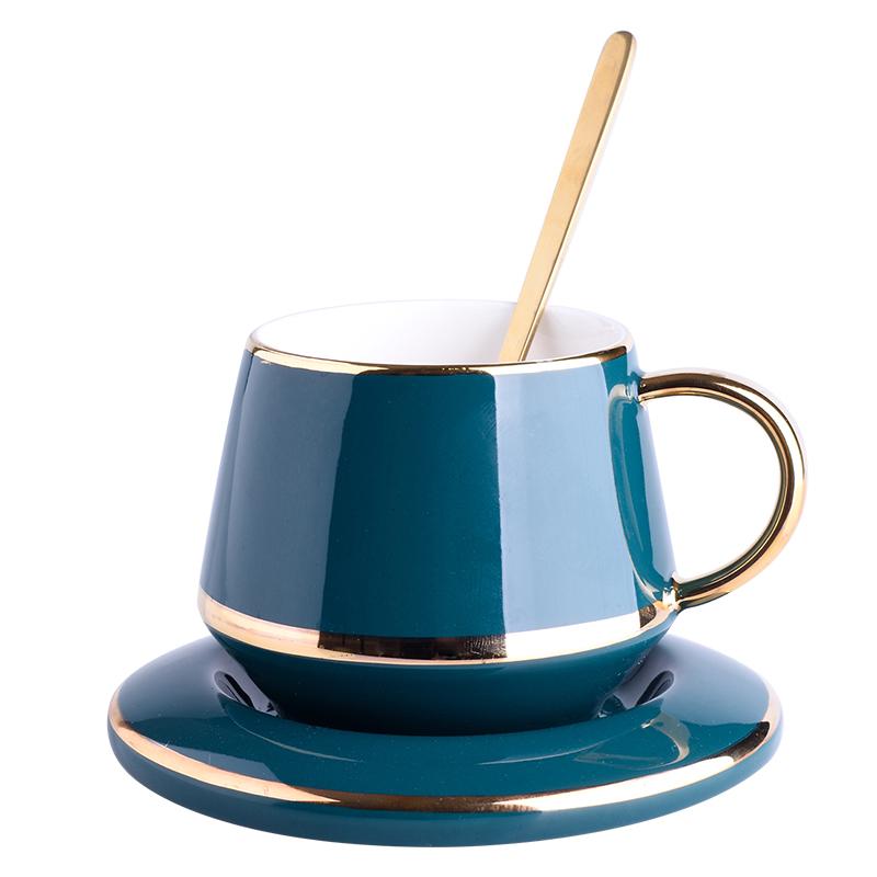 Ensemble de tasses à café européennes de luxe réutilisables, style britannique créatif, rouge vif, en porcelaine de Chine, Taza Madera, fournitures quotidiennes OO50BD