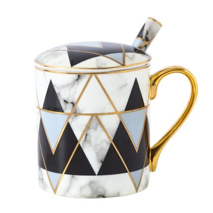 Mug nordique créatif géométrique avec couvercle et cuillère, tasse en céramique simple Taza Cafe Ceramica, tasse à café au lait pour petit-déjeuner maison MM66MKB